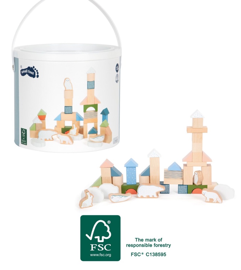 Small foot 12443 - Holzbausteine Arctic, Holz, 20-teilig im Eimer